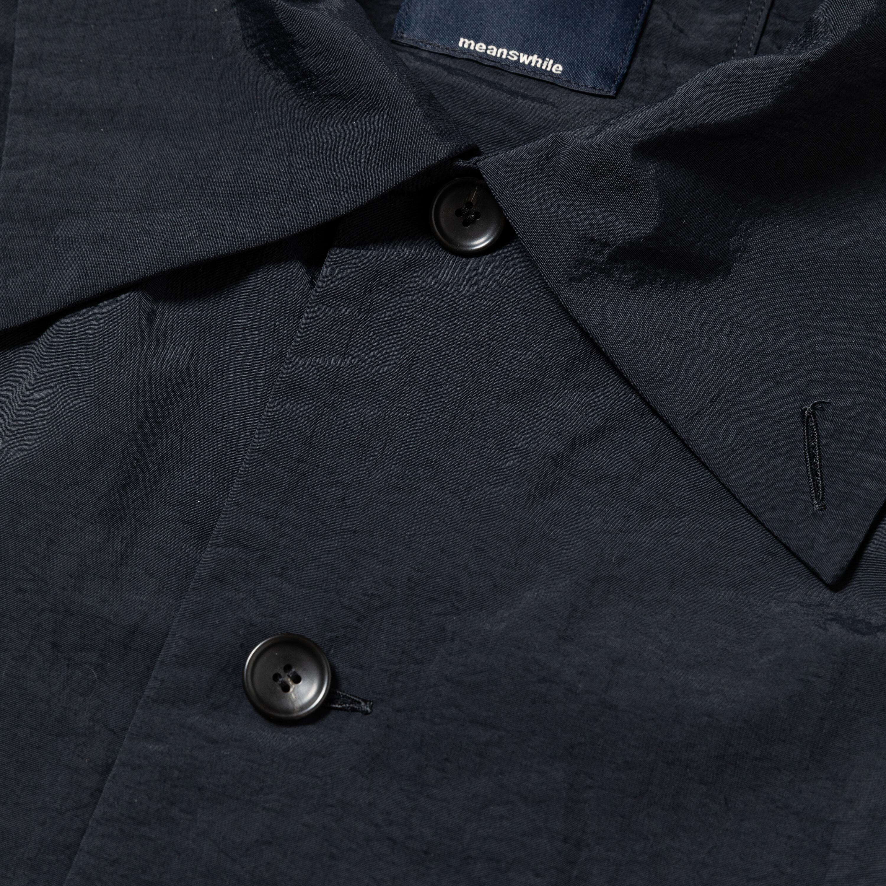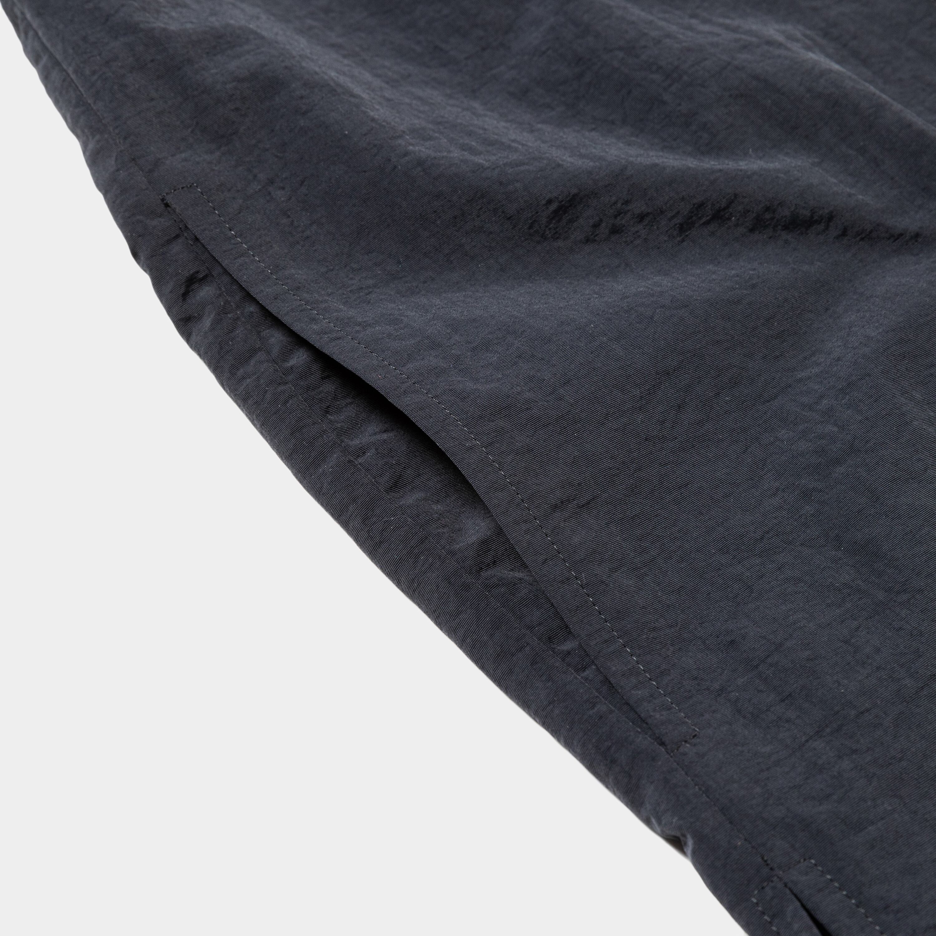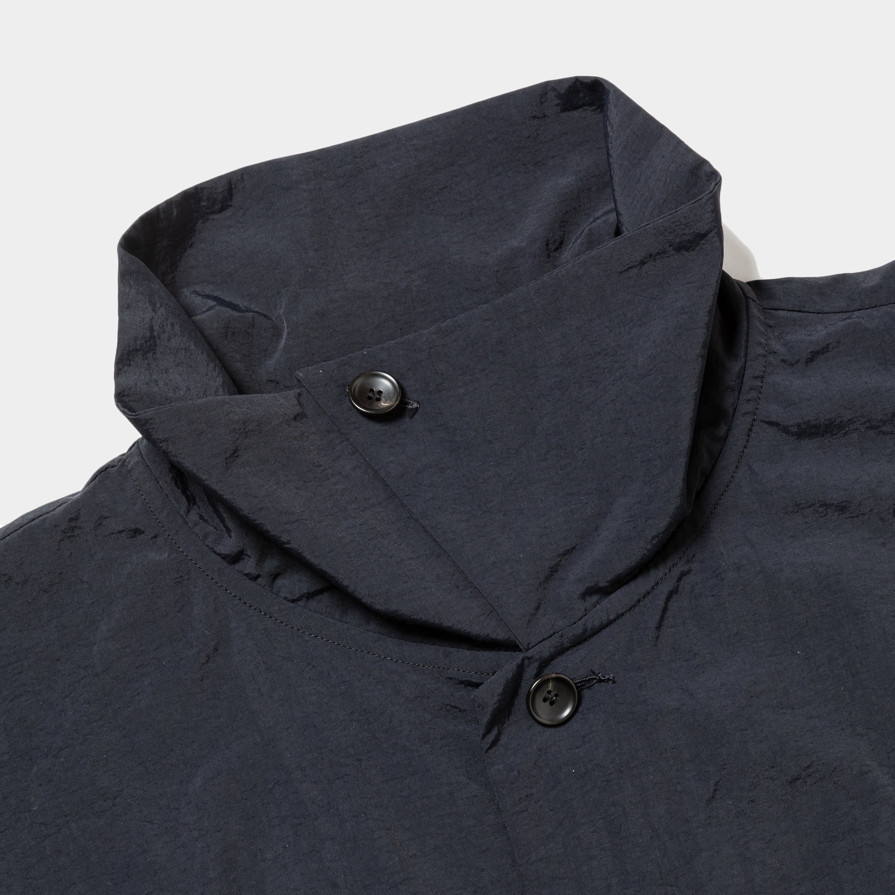 シワ加工を施した風合いにマットな色調、コットンライクな肌触りが特徴のナイロンタスランタフタを使用。ミリタリーやアウトドアテイストを表現しつつ、服地としてのしなやかさや着心地の良さも特徴。軽い風合いに加え、強度や耐急性を持ち、撥水性や紫外線ブロックの特徴も兼ね備えている。