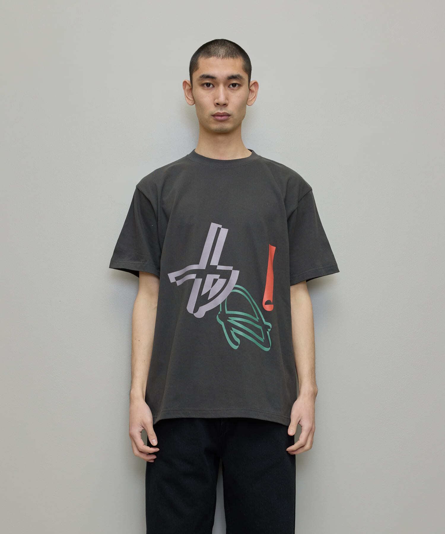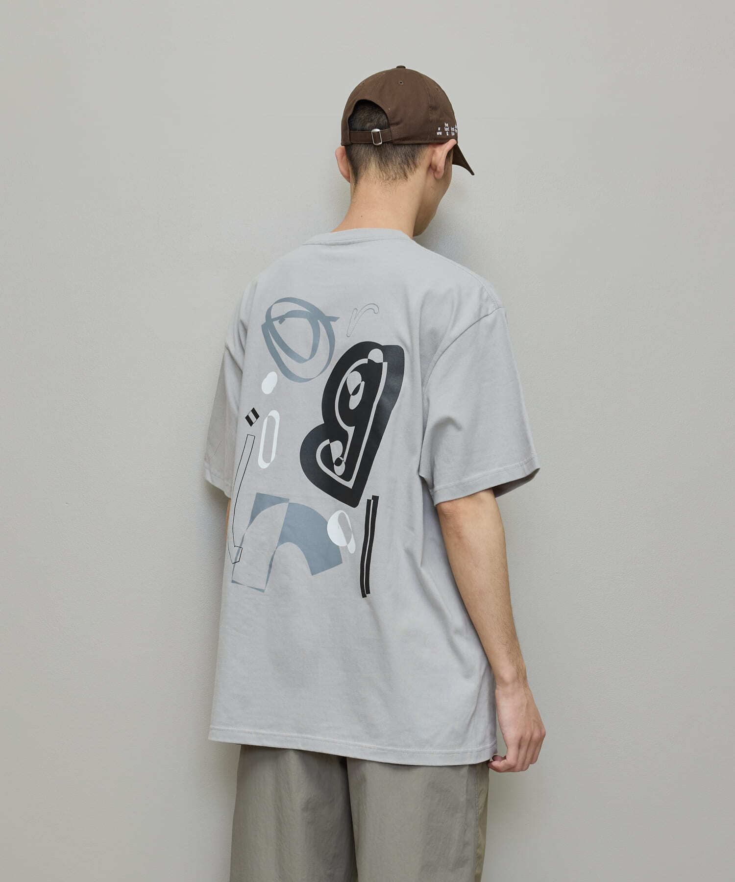もつれや絡まり、複雑性を表現したようなグラフィックがフロント、バック両面にプリントされたTシャツ。