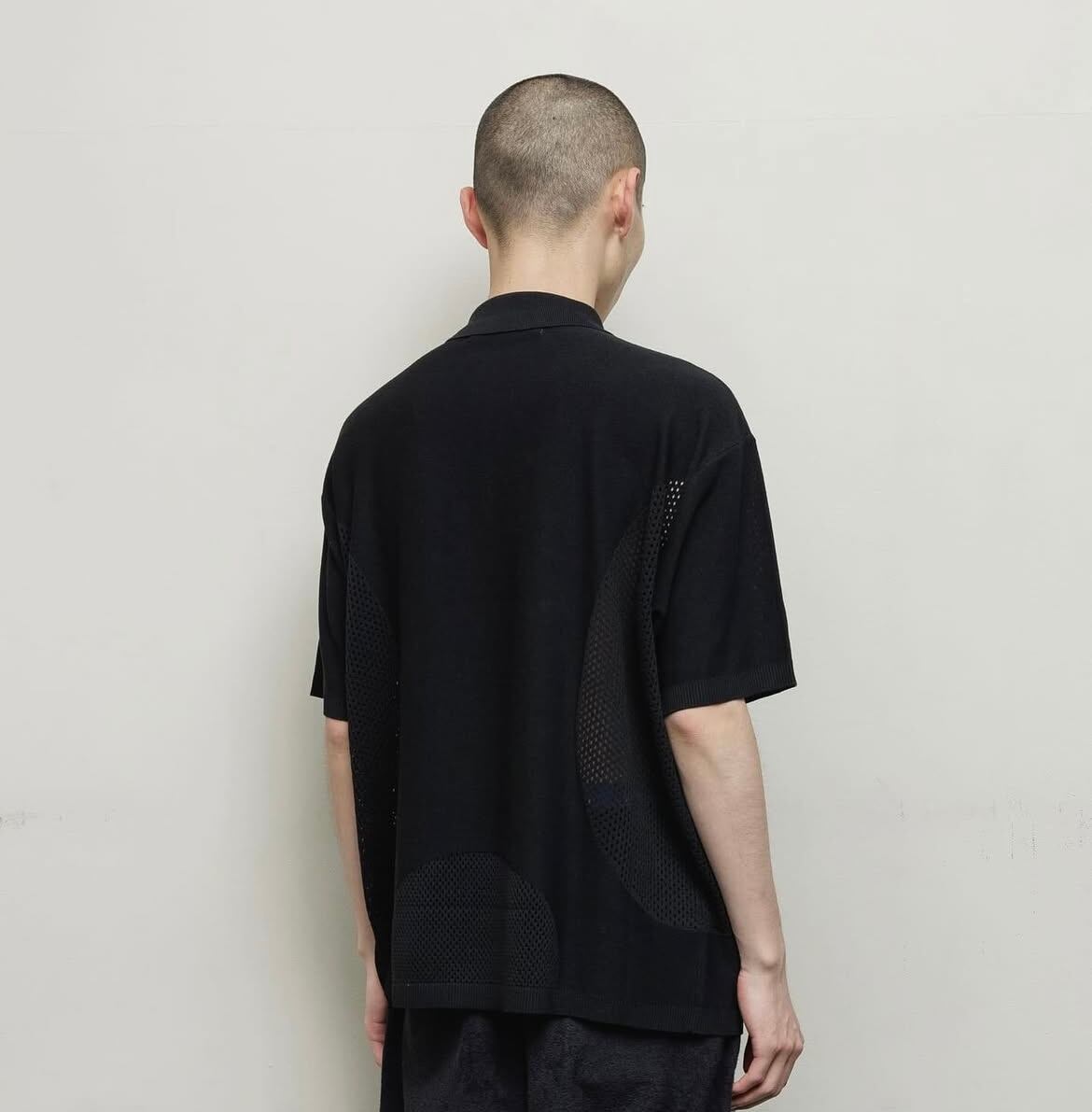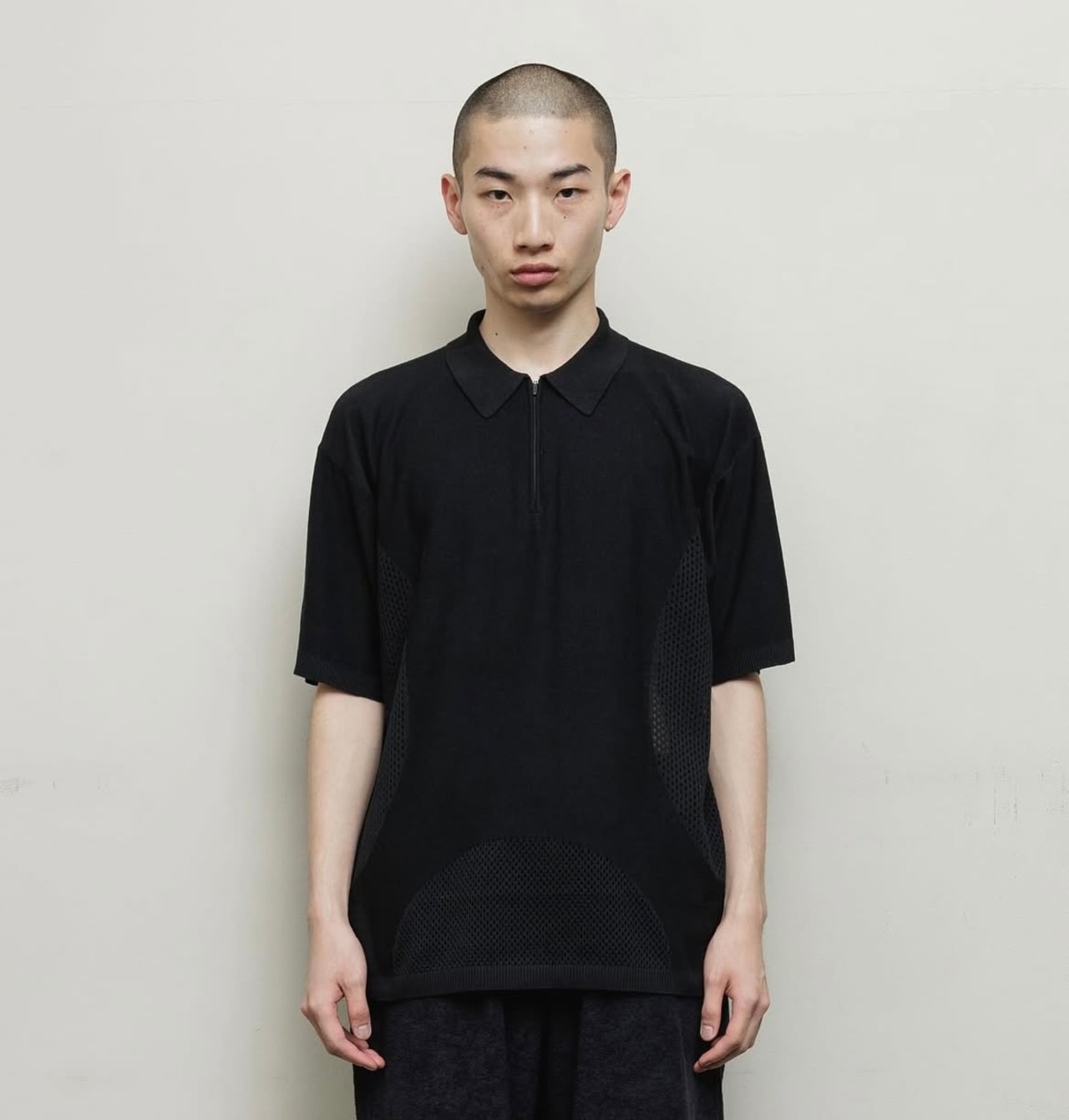 リブハイゲージのメッシュジップアップニットポロ。