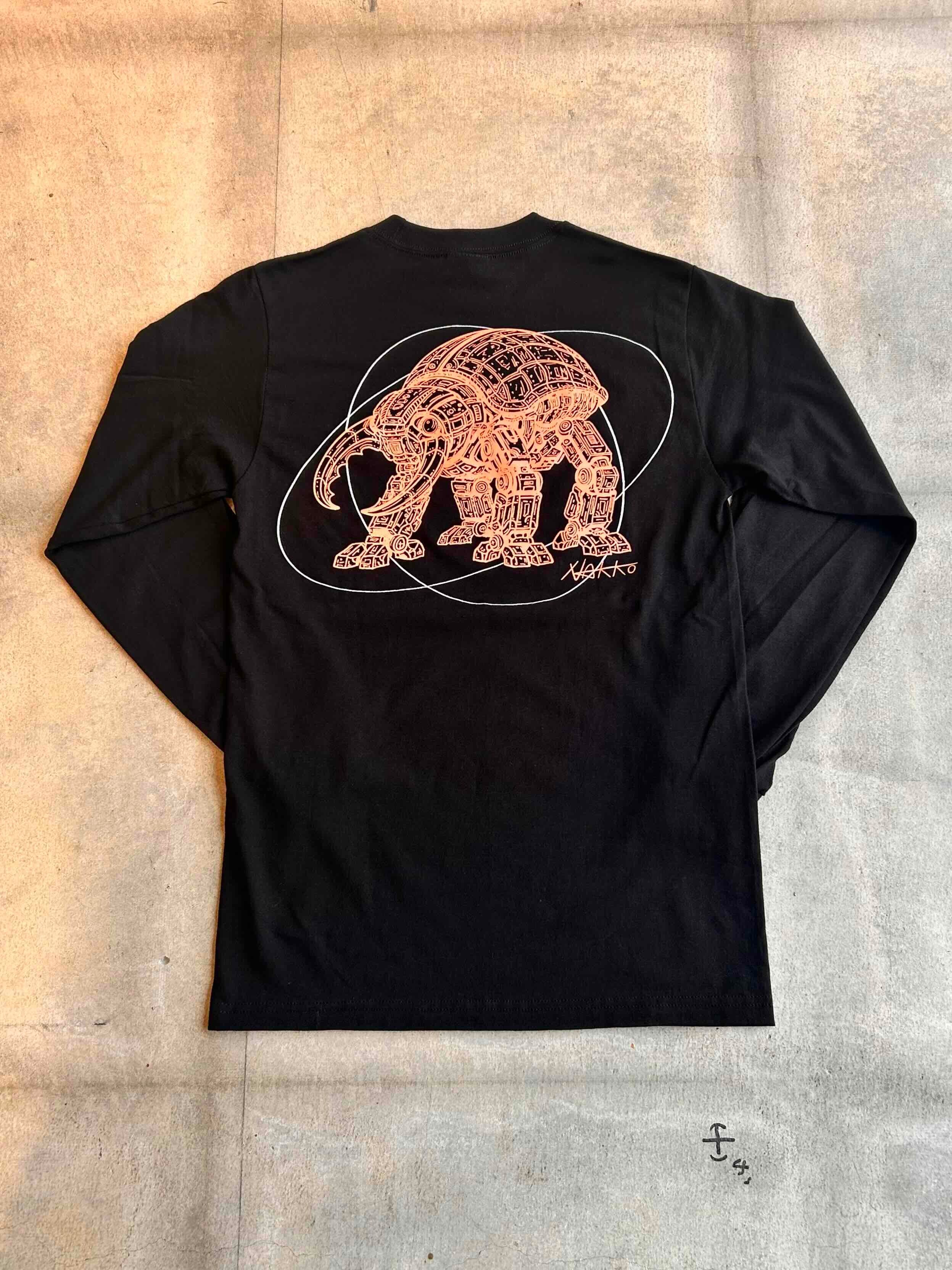 背面は斬新なロボットのクワガタをあしらった唯一無二のロンTです!
