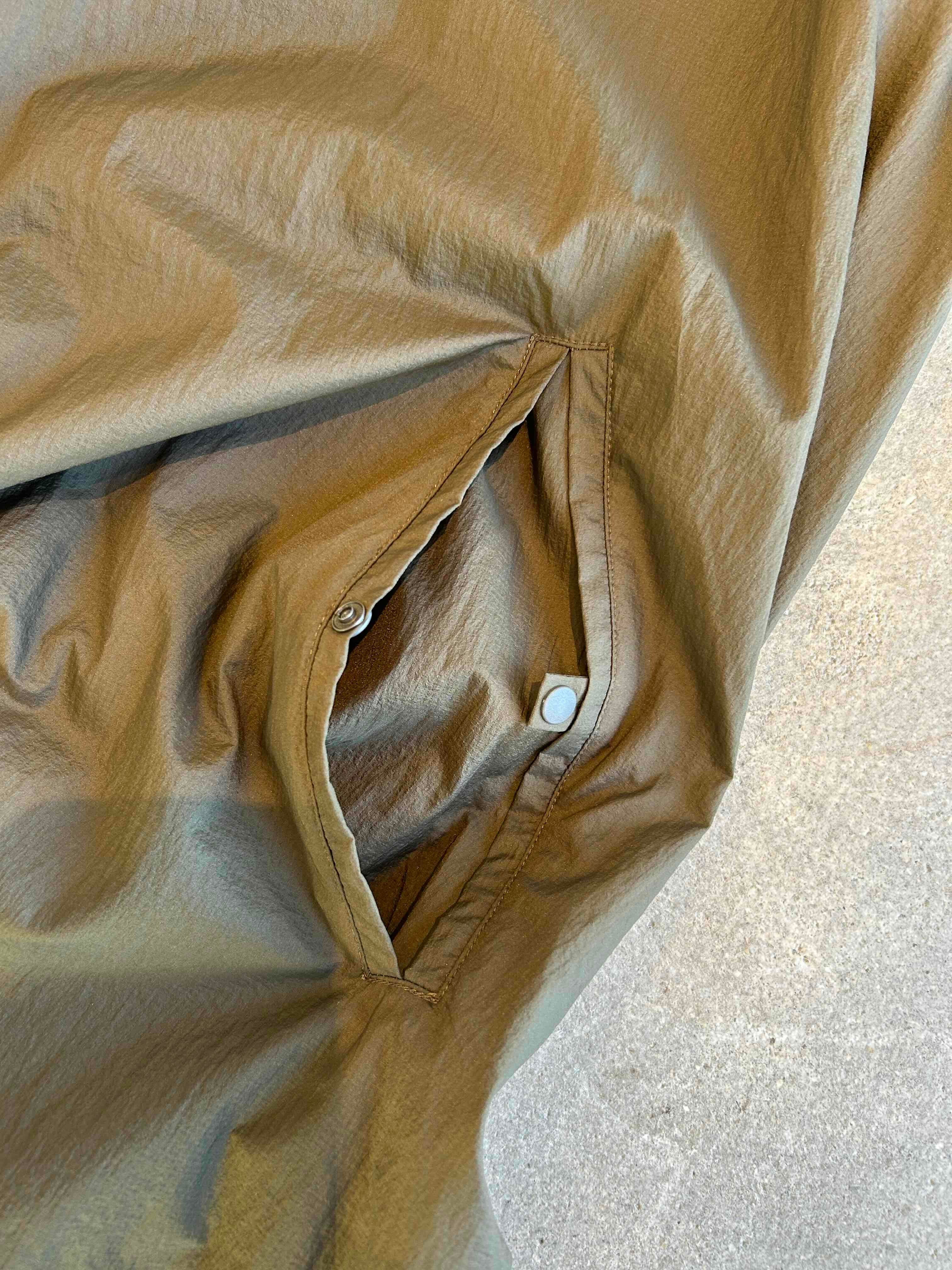 左ポケットに本体を収納できるパッカブル仕様で携帯性も抜群。