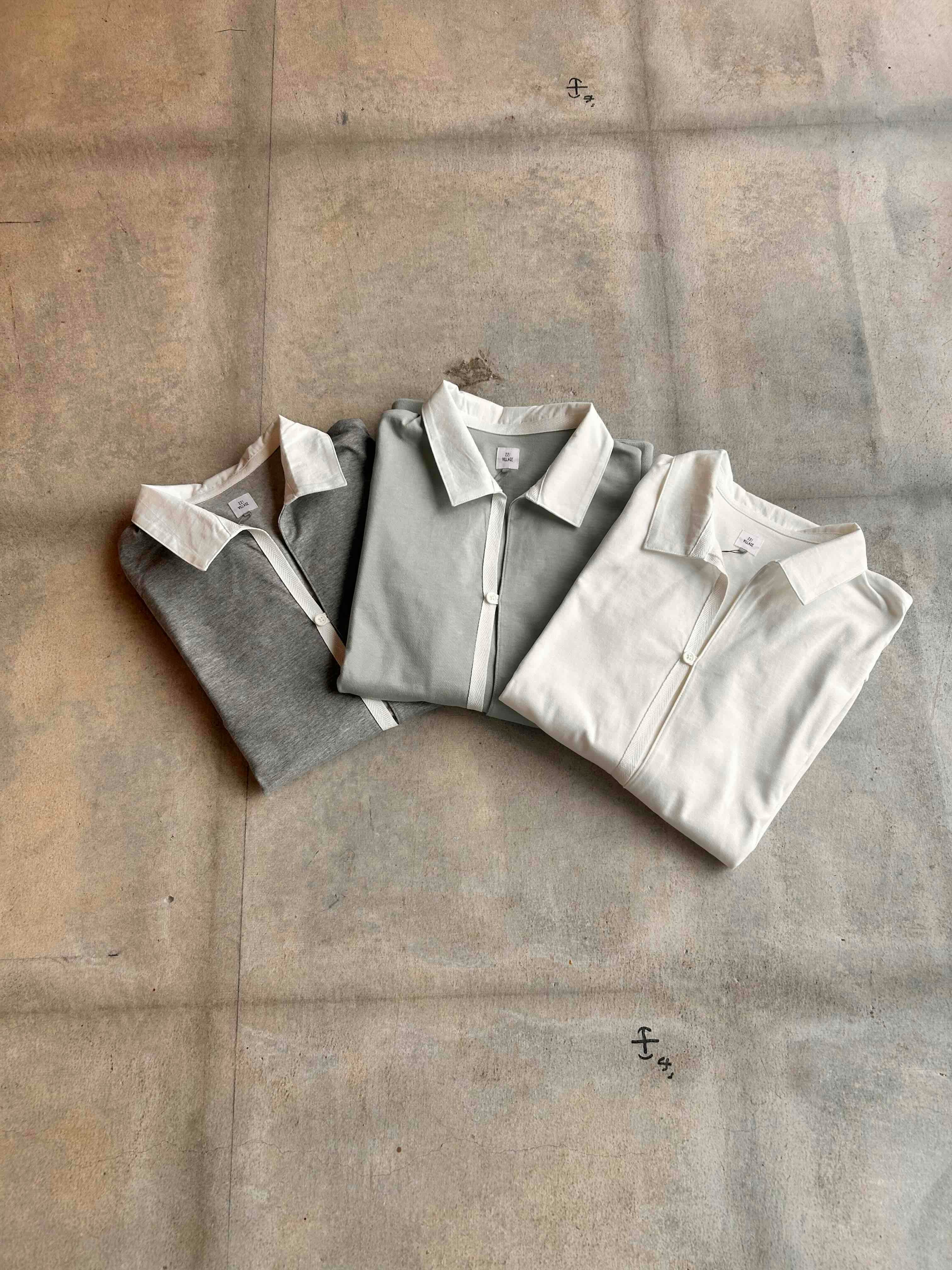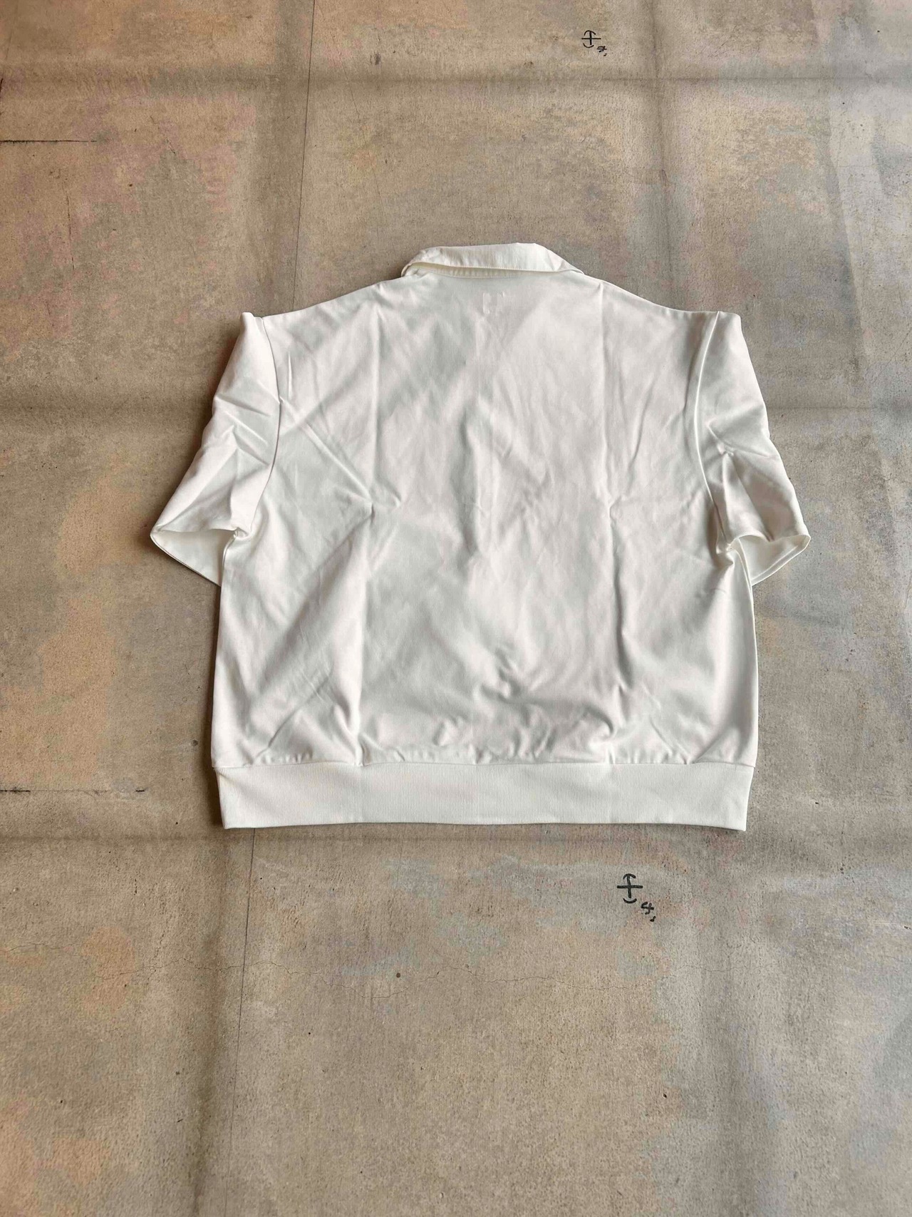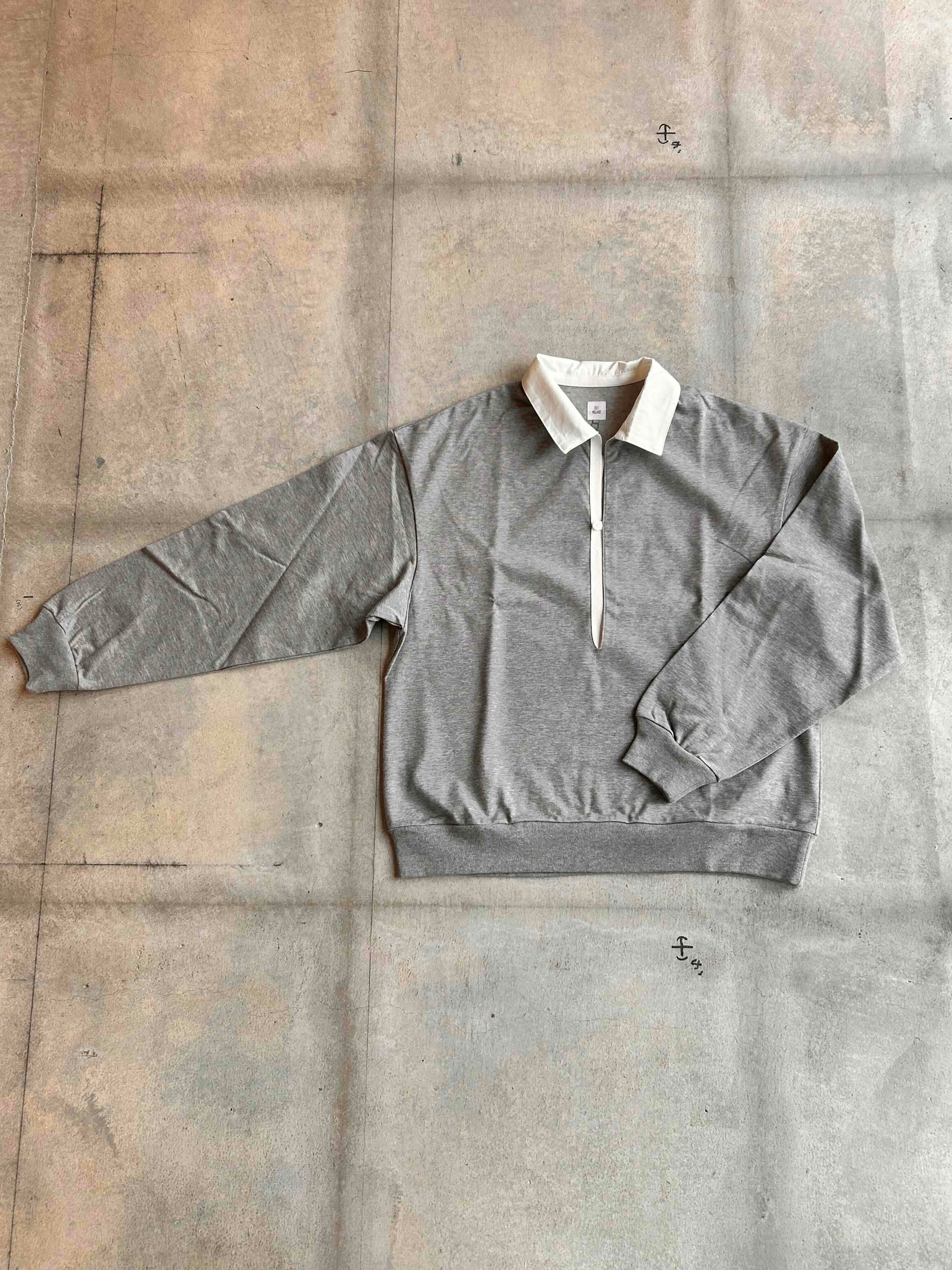 ハリのあるジャージー素材でラガーシャツをイメージさせる衿のデザイン。