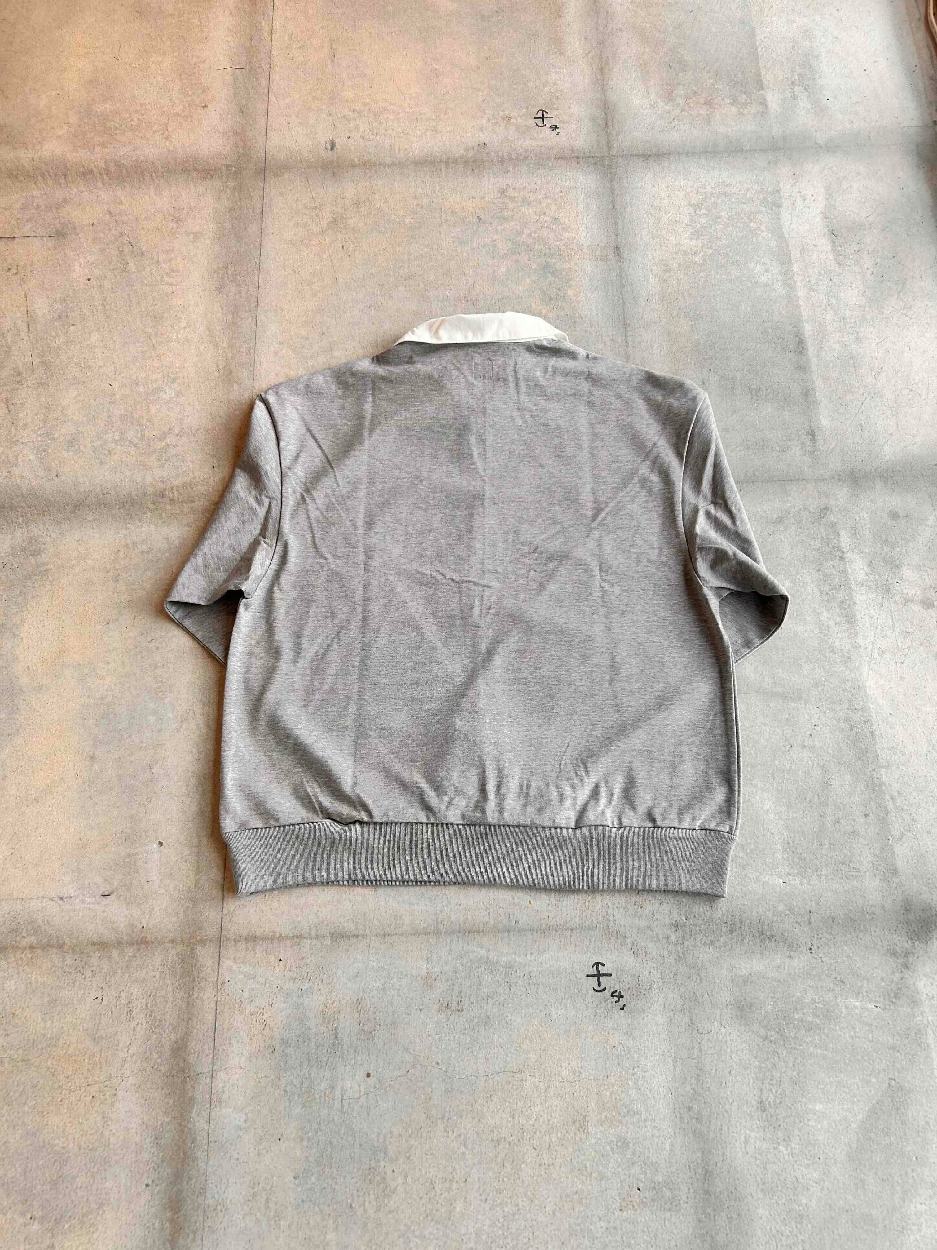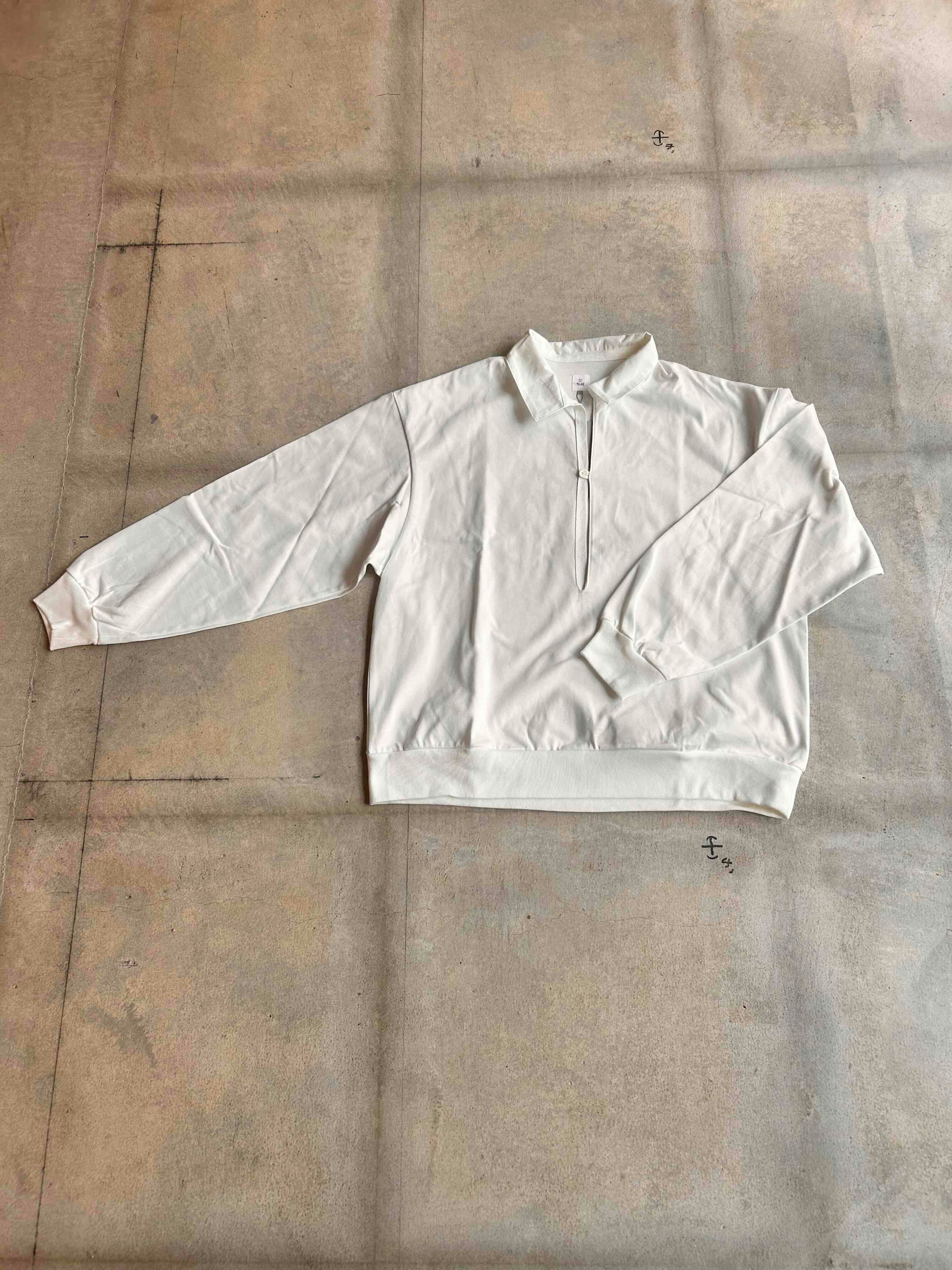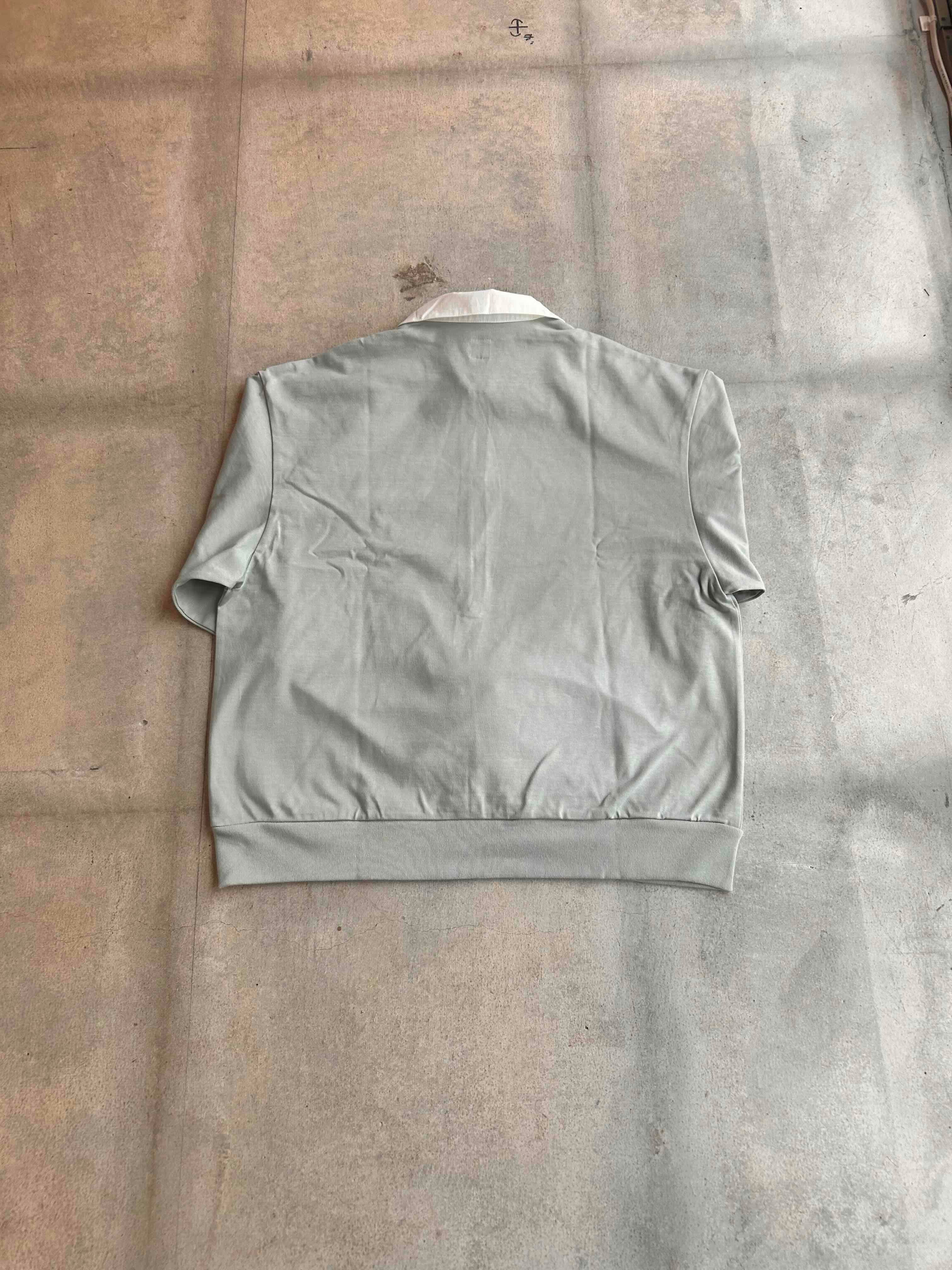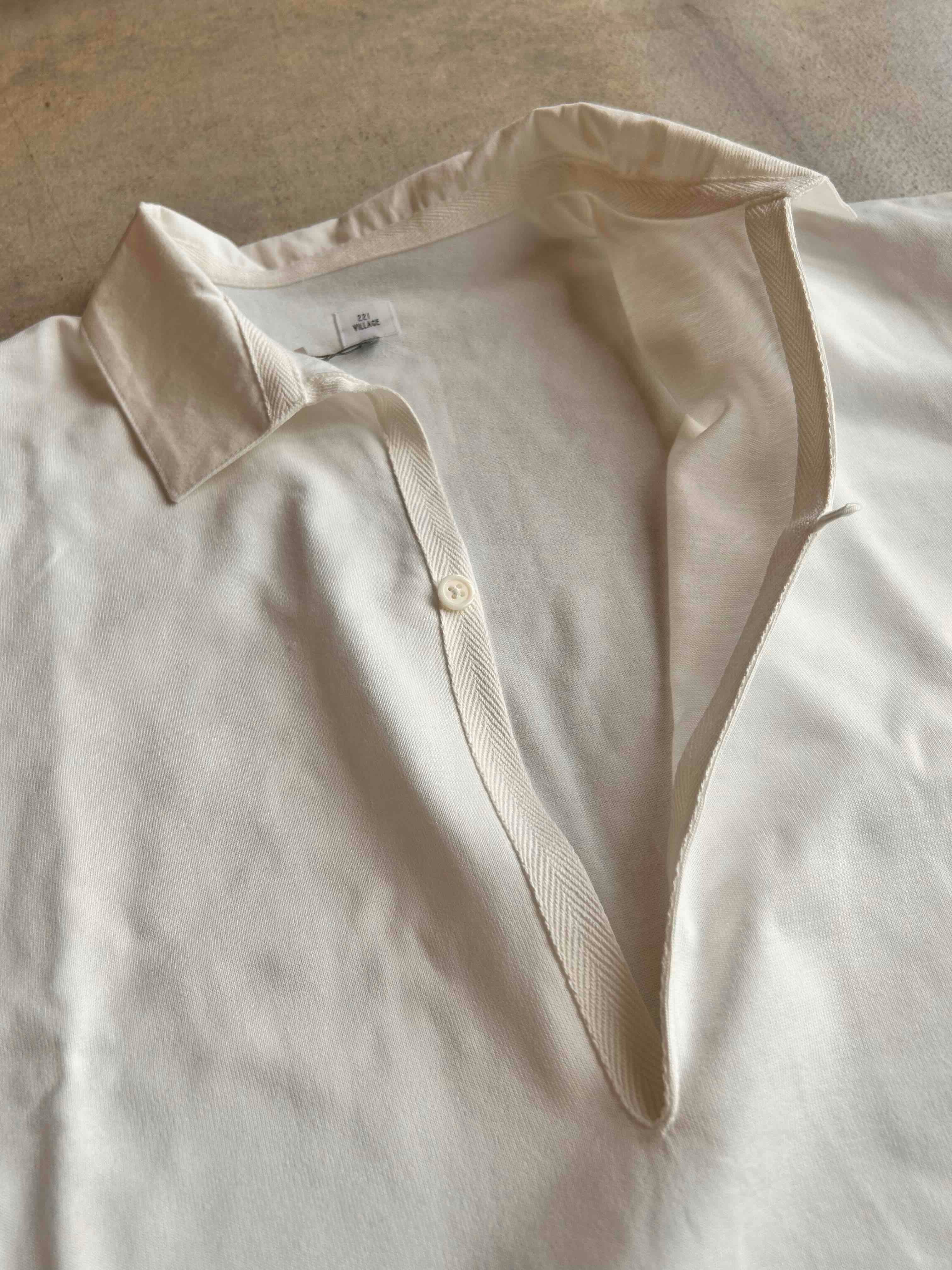 ハリのあるジャージー素材でラガーシャツをイメージさせる衿のデザイン。