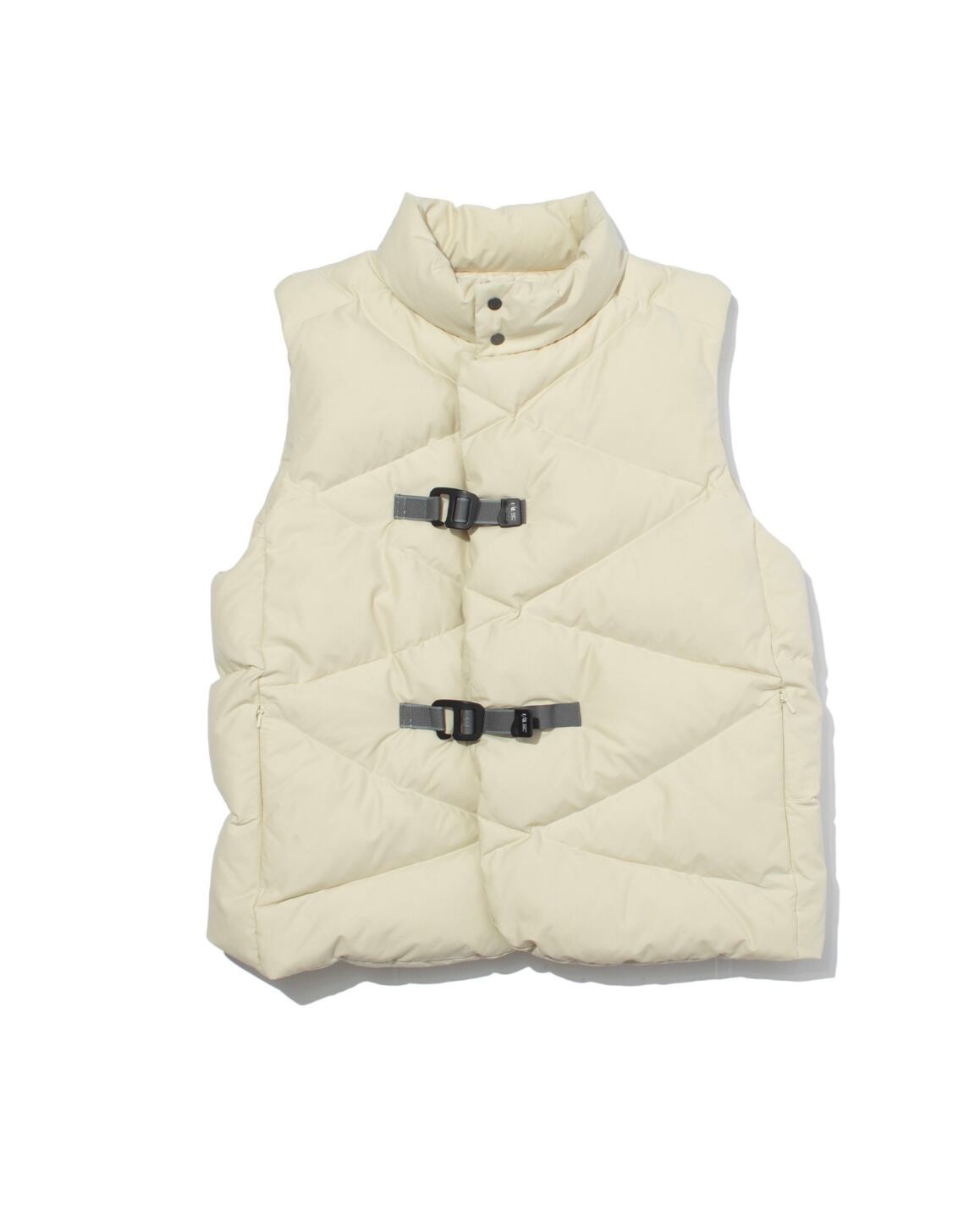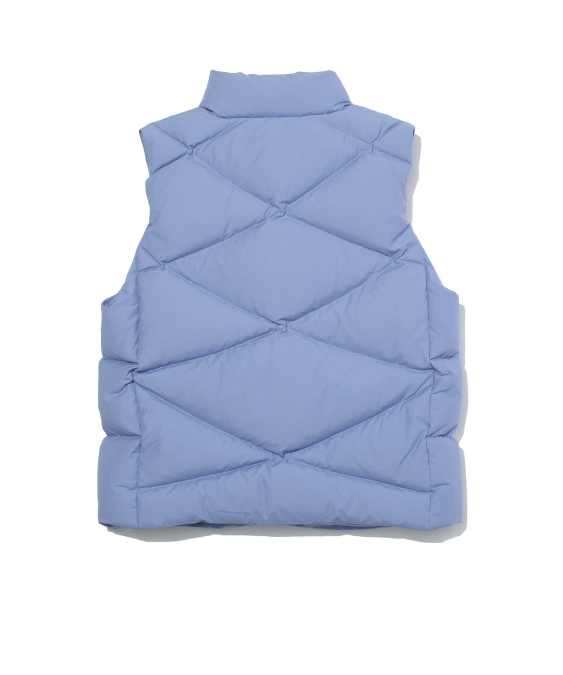 ジャケットや寝袋、布団から回収した羽毛を丁寧に再洗浄し、650フィルパワーの高品質なリサイクルダウンを使用。表地にはリサイクルナイロンとオーガニックコットンを組み合わせ、環境に配慮しつつ上品な仕上がりを実現したキルティングベストです。