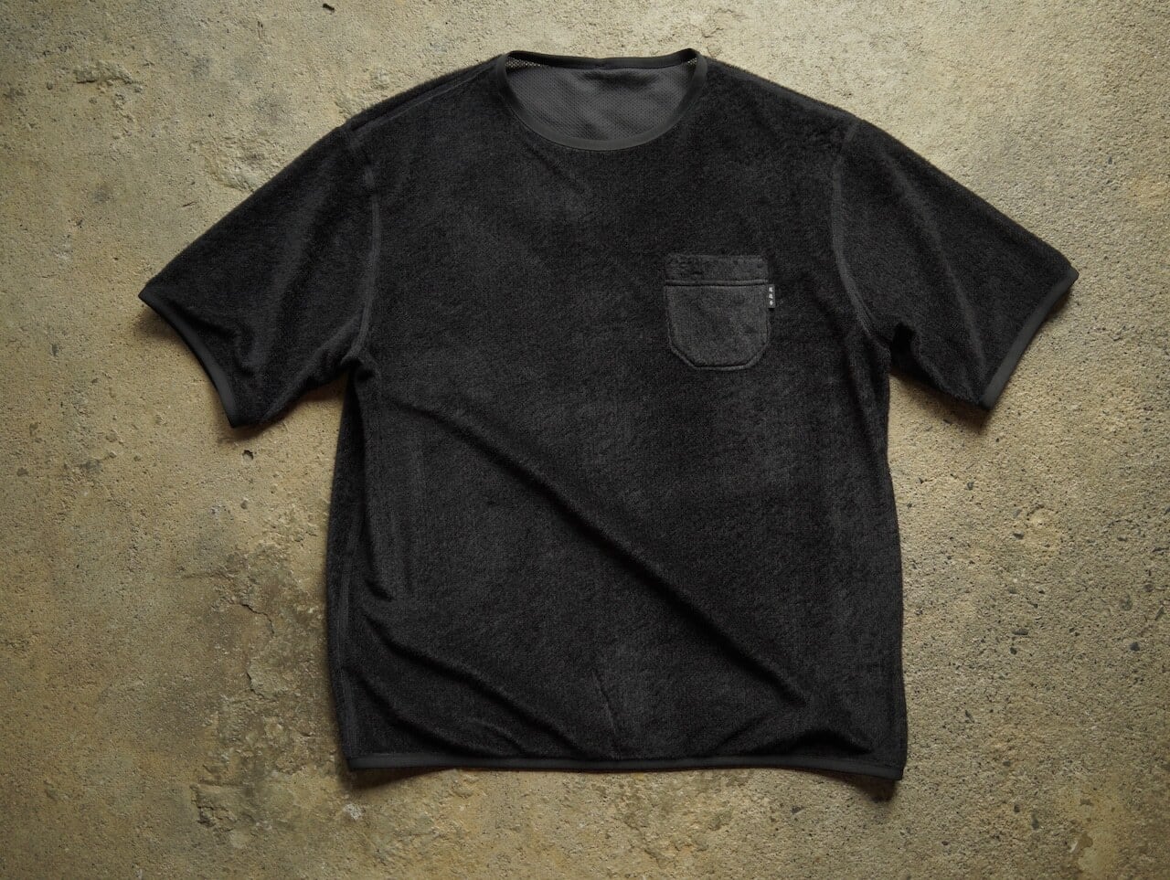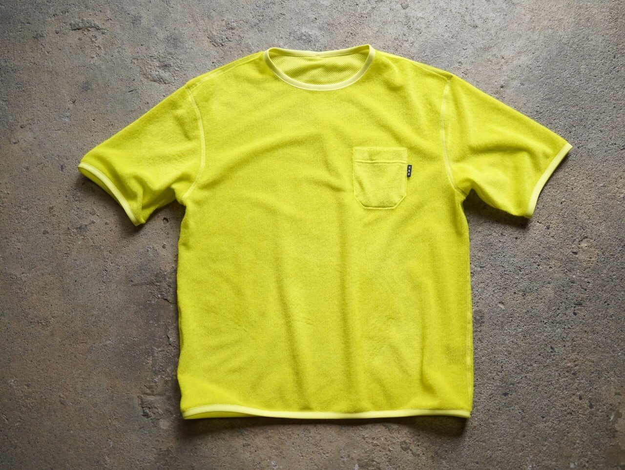 ハイクの時などは裏返して起毛面を裏にして、汗の吸い上げの良さと速乾性をマックスに機能させるという1枚2役のTシャツです。