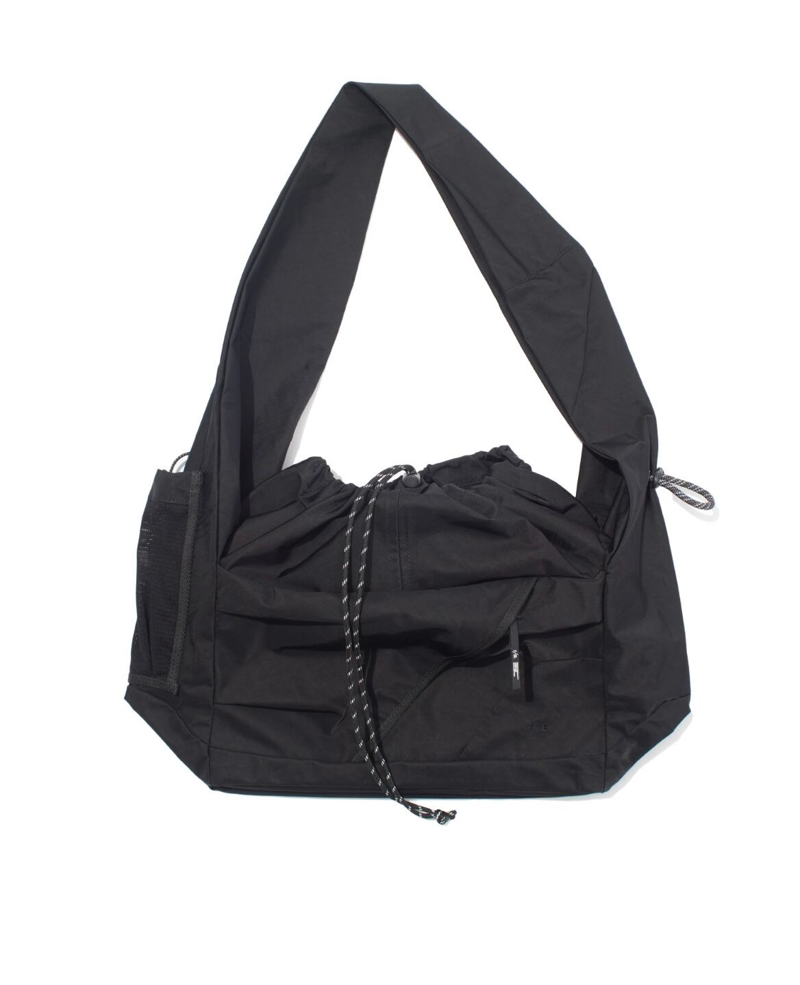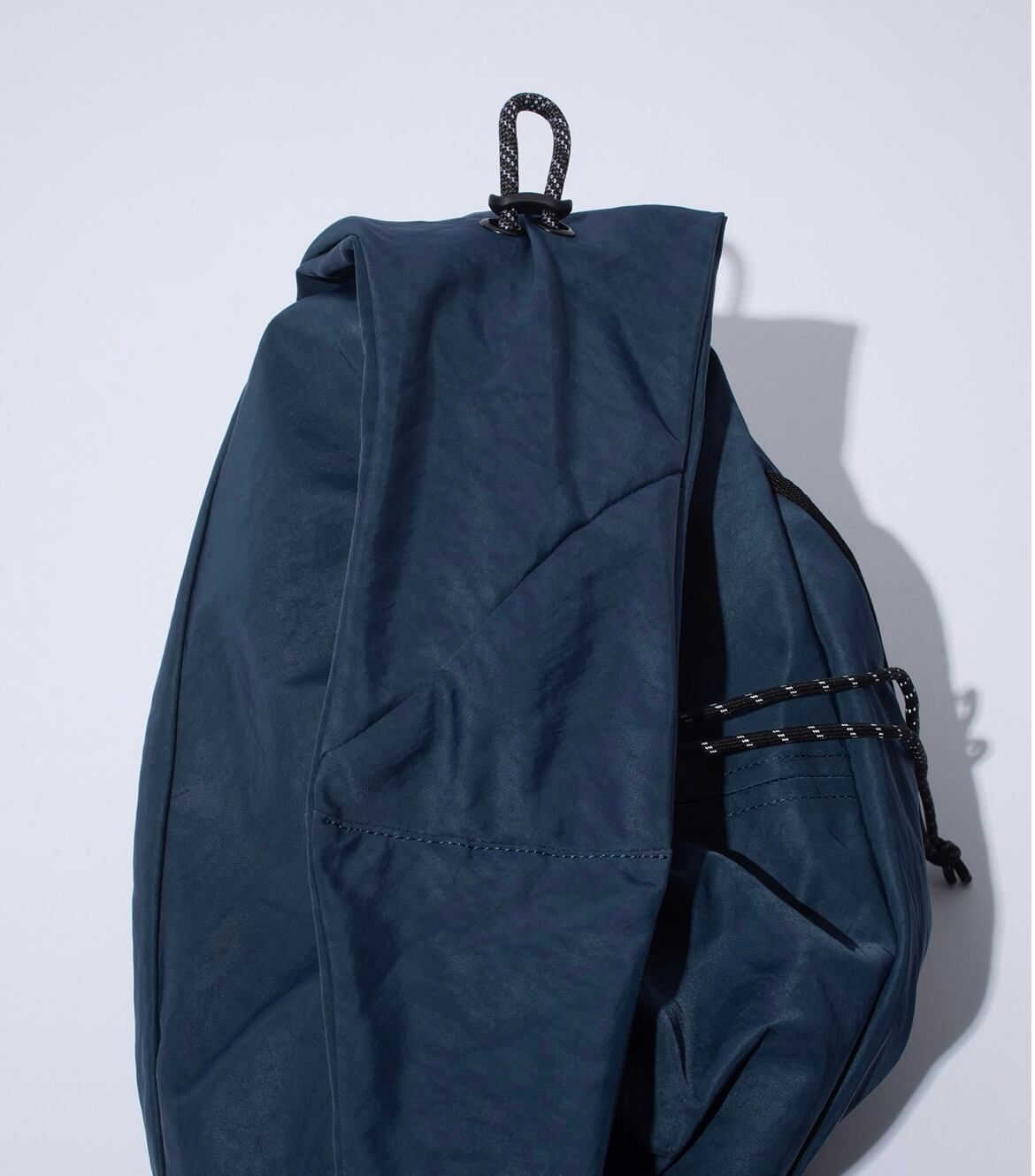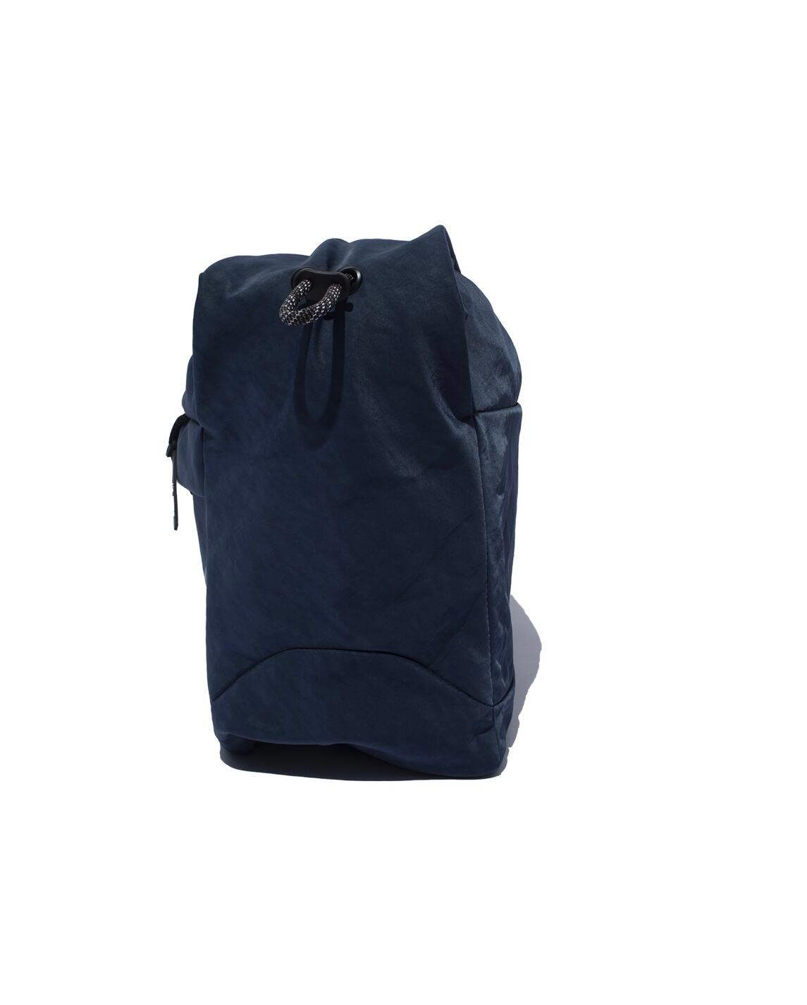 大容量の長方形フォルムに、口元はドローコード付きのフラップ仕様で中身が見えにくい安心設計となっています。