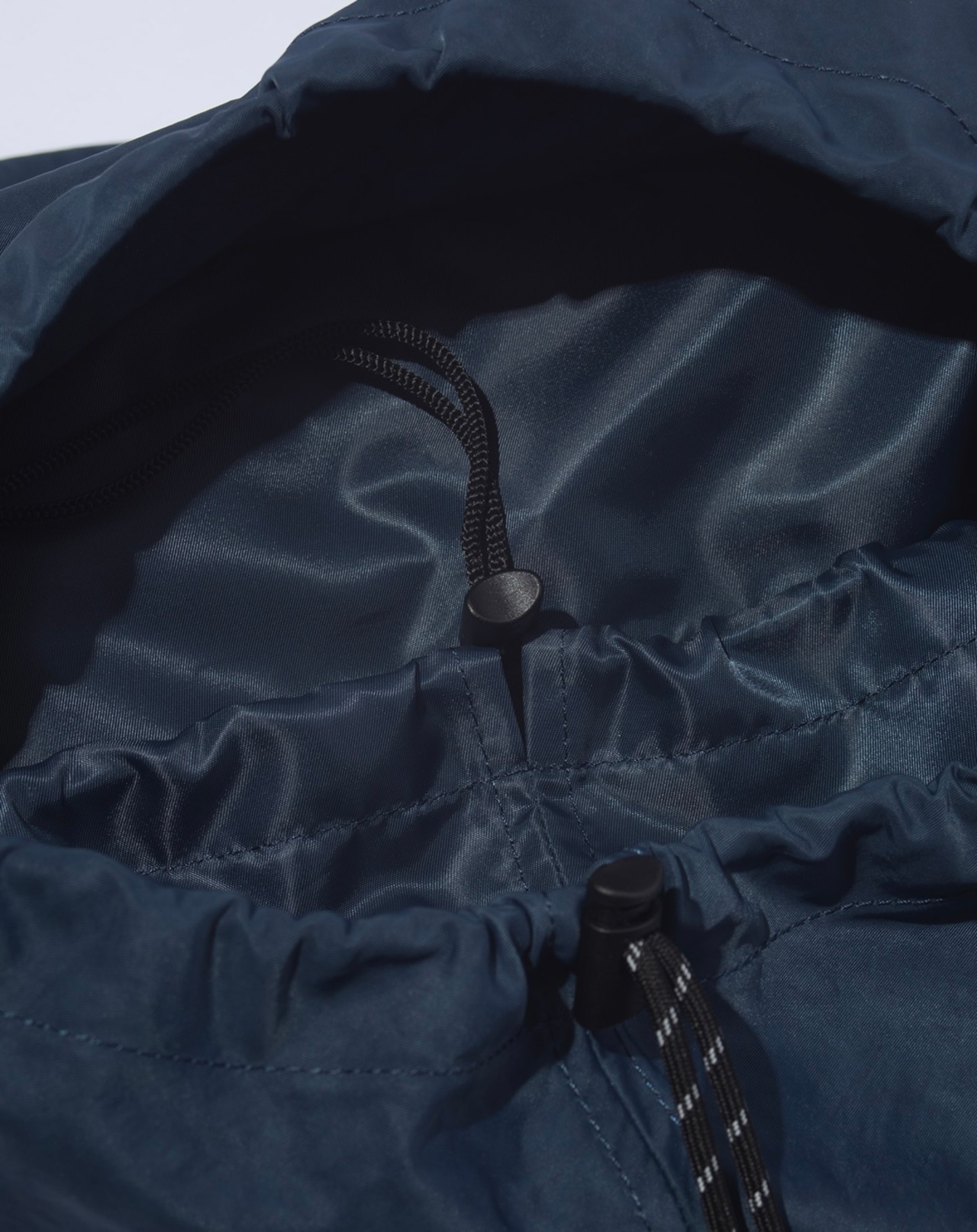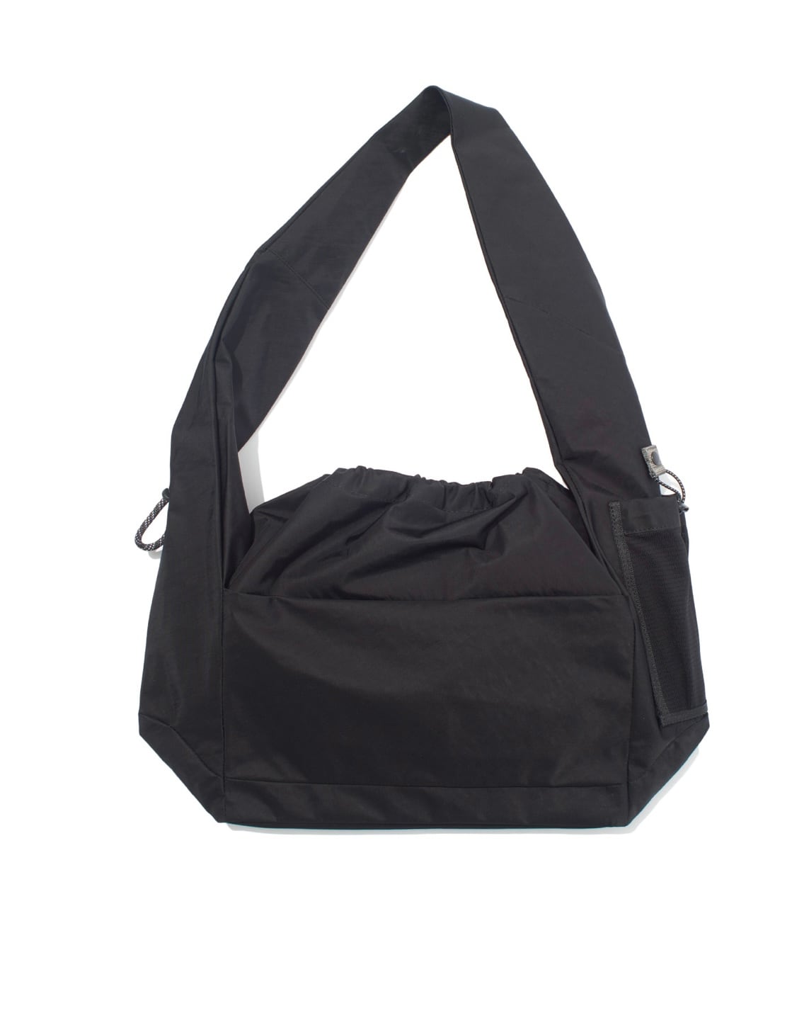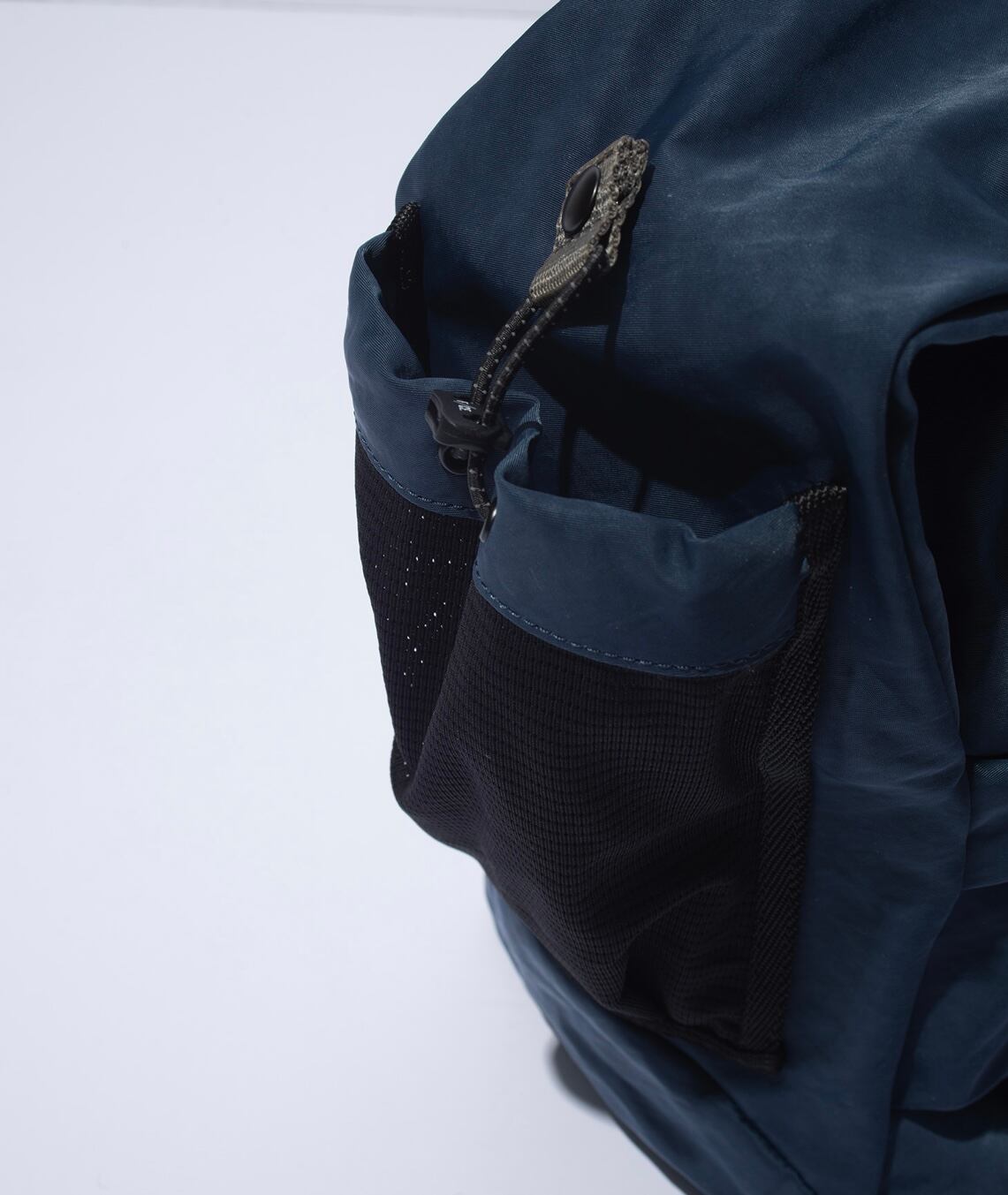 大容量の長方形フォルムに、口元はドローコード付きのフラップ仕様で中身が見えにくい安心設計となっています。